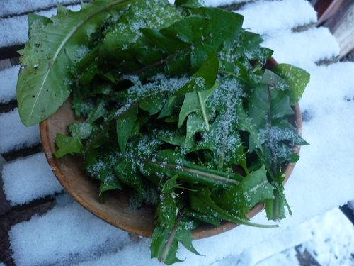 Löwenzahn-Ernte im Januar